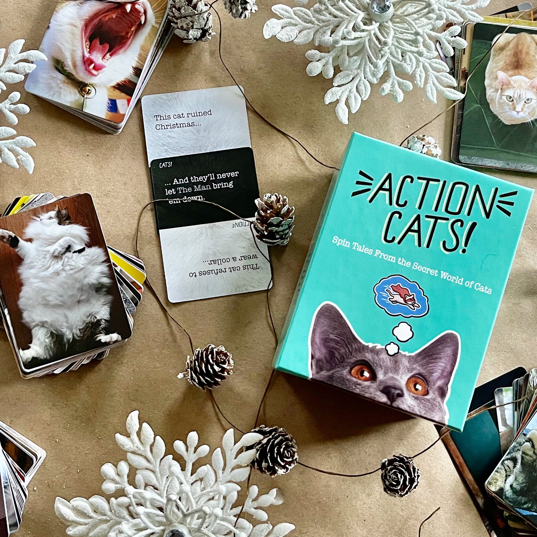 Action Cats! a fluffy, delightful, family friendly creative storytelling game where you compete to tell the secret life story of a cat!