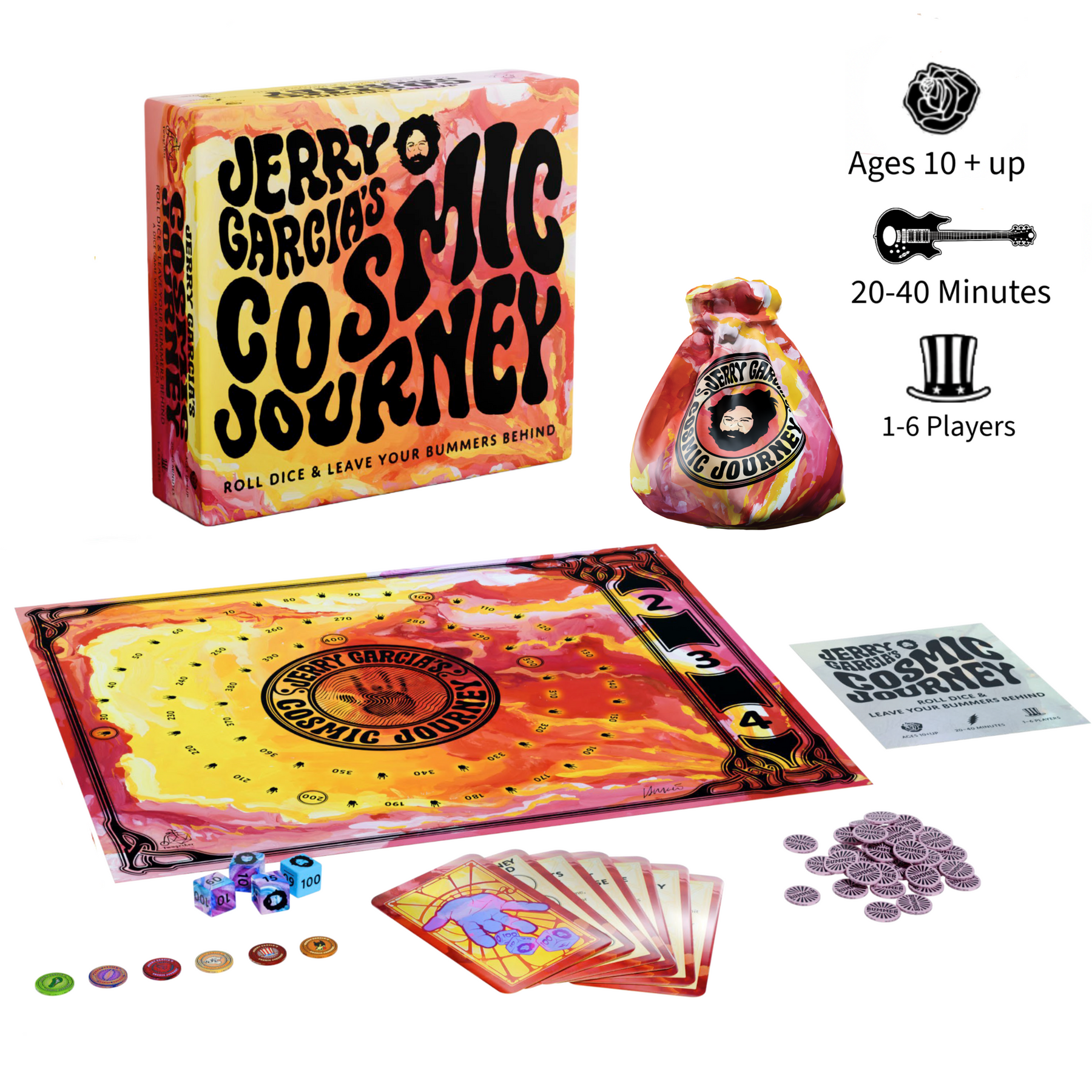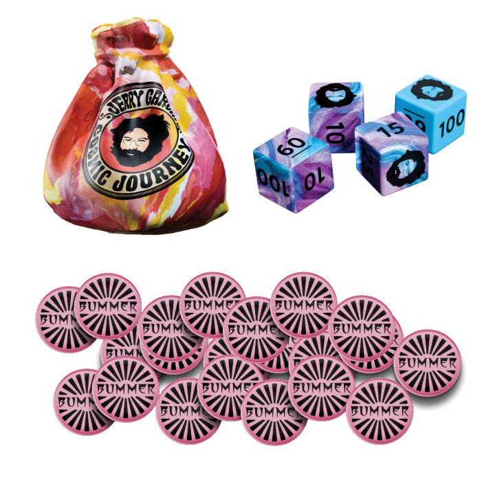 Push your luck rolling dice as you take trips around a labyrinth of Jerry’s art, picking up bummer tokens based on your score. When all bummers have been claimed, journey home and be the first to get rid of them to win!
